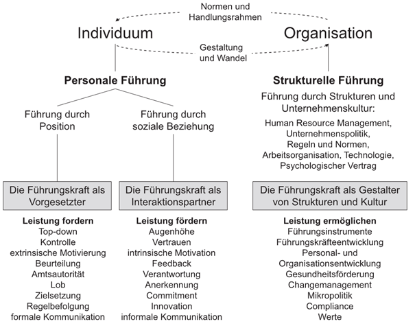 Führung ist zielgerichtete Einflussnahme und geschieht prinzipiell auf zweierlei Weise: (Berger 2018, S.78)