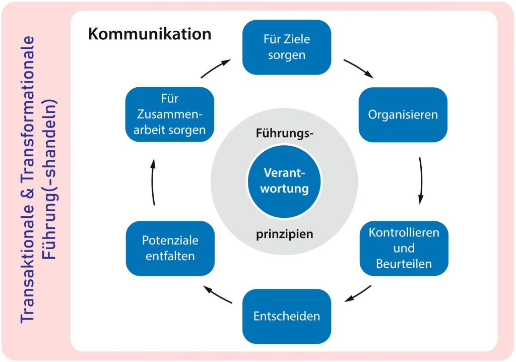 Die Führungsaufgaben beschreiben, was eine Führungskraft zu tun hat (für Ziele sorgen, organisieren etc.) oder besser, wofür sie zu sorgen hat. (Pfister/Neumann 2019, S.61)
